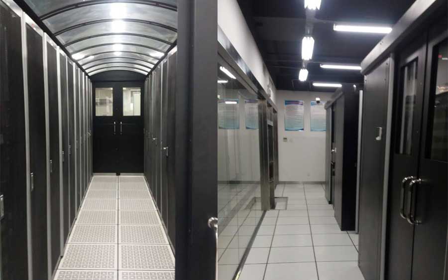设备机架采用前进风,后出风方式。本工程采取冷通道封闭措施,机房架空地板高度为 800mm。冷风通道根据设备平面选择两侧开门,采用外开门方式。
